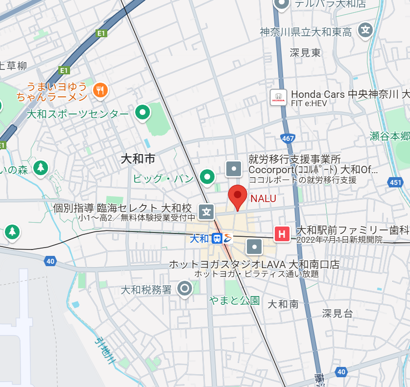 Access 月曜: 定休日火曜〜木曜: 10:00〜20:00金曜〜土曜: 10:00〜21:00 神奈川県大和市大和東3-1-1ゑびすビル3F050-8884-3470nalu@nanaluhair.com